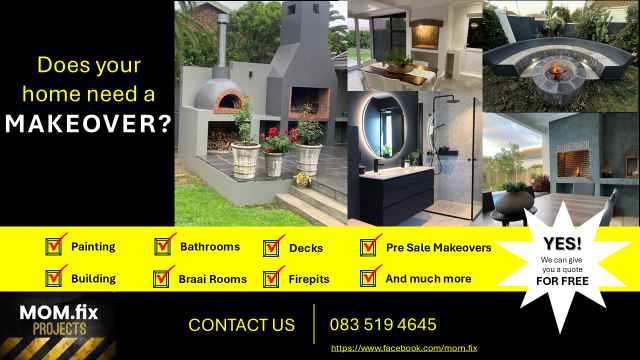 PAINTING, BATHROOMS, DECKS, PRE-SALE MAKEOVERS, BUILDING, BRAAI ROOMS, FIREPITS AND MUCH MORE!